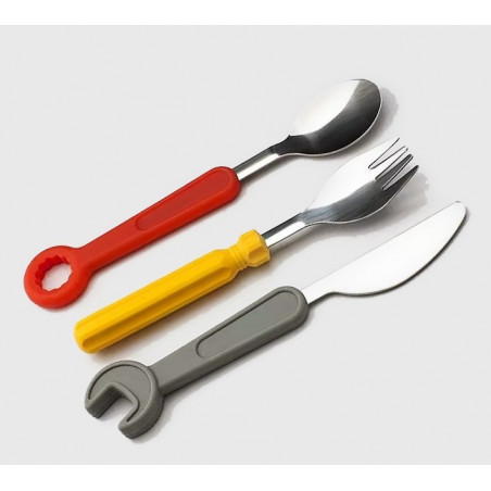 Cet ensemble de couverts avec une fourchette, un couteau et une cuillère est un cadeau agréable et utile. Fabriqué en acier inoxydable et en plastique (poignée).