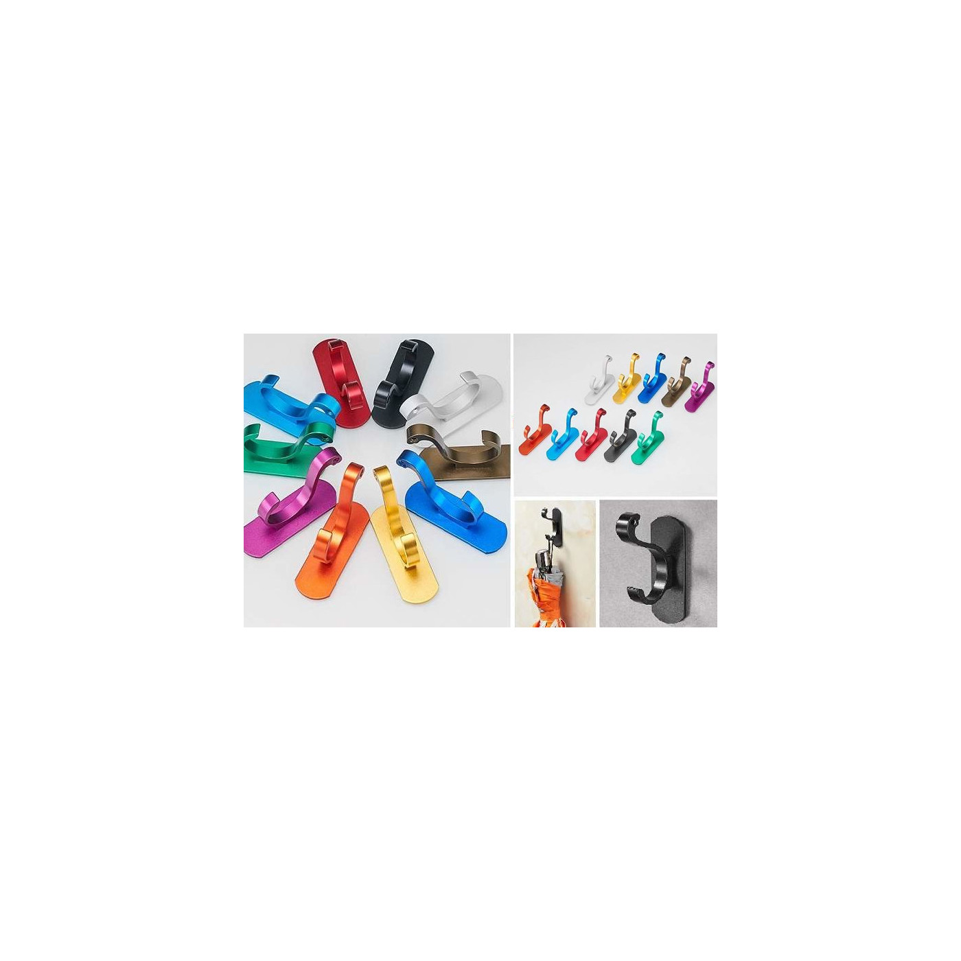 Tyto háčky prodáváme v 10 různých barvách: červená, zelená, fialová, černá, světle modrá, tmavě modrá, stříbrná, bronzová, oranžová a zlatá. Háček je dodáván se silným lepidlem pro upevnění na zeď.