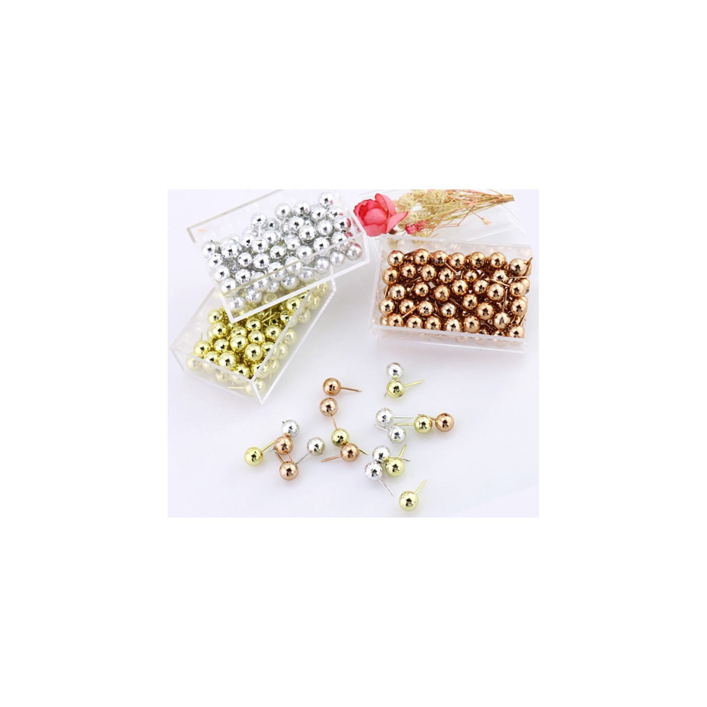 Připínáčky jsou obvykle vyrobeny z matného kovu s plochou bílou hlavou, naše verze je mnohem hezčí na pohled!