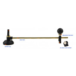 Kruhová řezačka skla (zařízení pro řezání skla ve tvaru kruhu), maximální průměr řezaného kruhu: 80 cm (tj. Poloměr 40 cm).