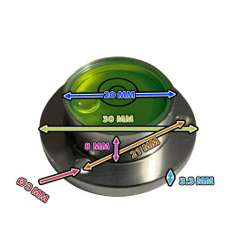 Tato robustní, kulatá vodováha má hliníkový plášť a neonově žlutý/zelený interiér. Bublina ukazuje, zda je něco vodorovně ve všech horizontálních směrech. Nepostradatelný pro mnoho zaměstnání!