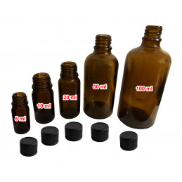 Vores brune apoteksflasker i glas fås i 5, 10, 20, 50 og 100 ml.