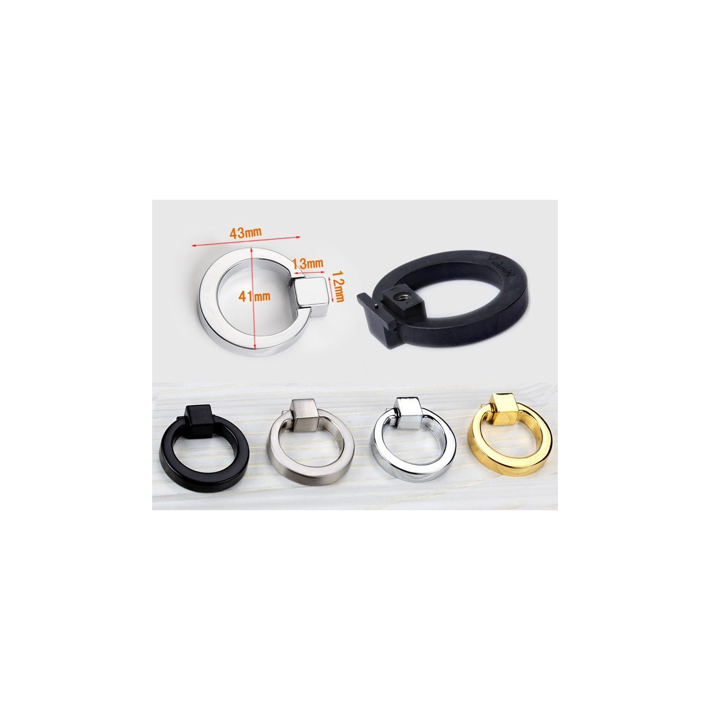 Metal ringhåndtag med et skruehul i bunden. Med den medfølgende skrue kan håndtaget fastgøres sikkert til dine skabe og/eller skuffer.