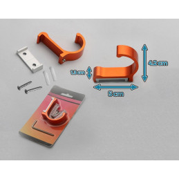 Vi sælger disse kroge i 10 forskellige farver: rød, grøn, lilla, sort, lyseblå, mørkeblå, sølv, bronze, orange og guld. Krogen leveres med skruer og stik.