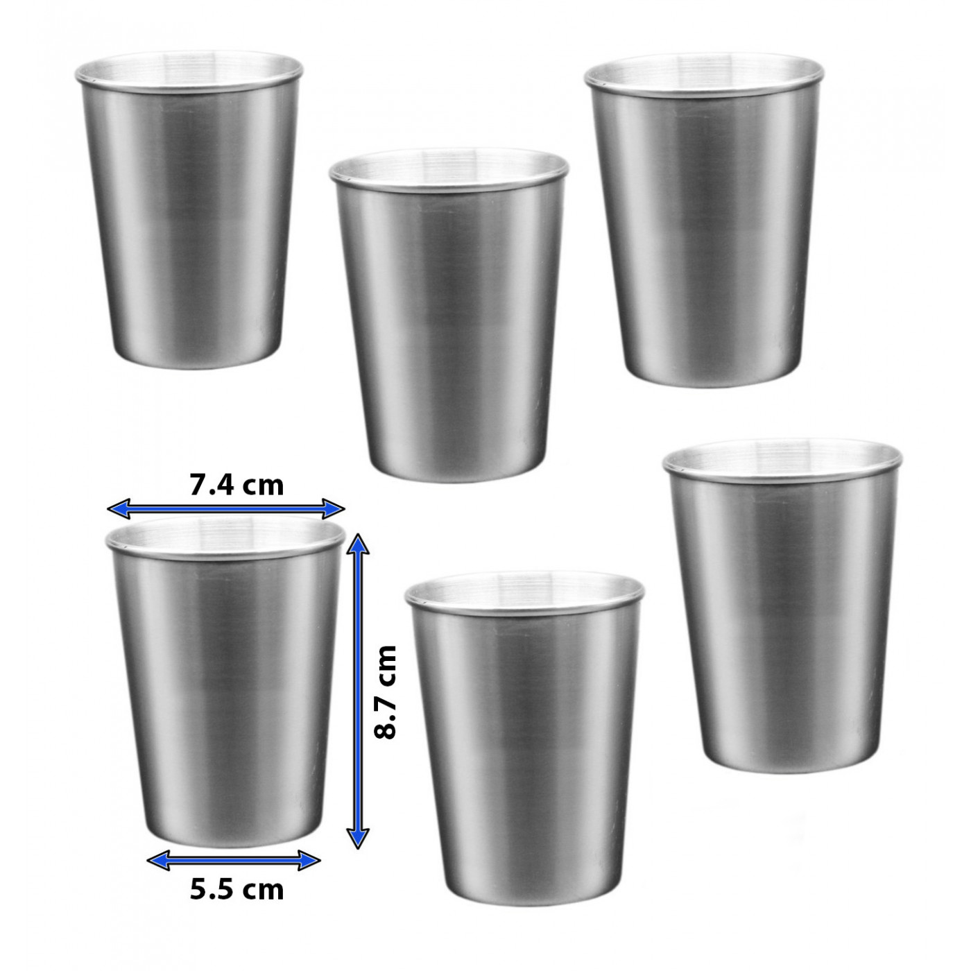 Tåler opvaskemaskine Materiale: rustfrit stål Volumen: 230 ml Dimensioner: se foto Antal kopper i dette sæt: 6