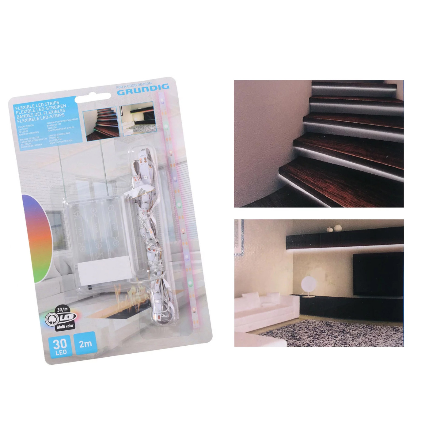 LED strip, 2 meter (30 leds/meter, IP20, på 3xAA batterier)