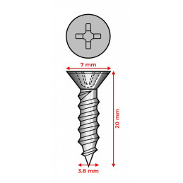 Sæt med 10 forsænkede metalskruer til 200N gasfjedre