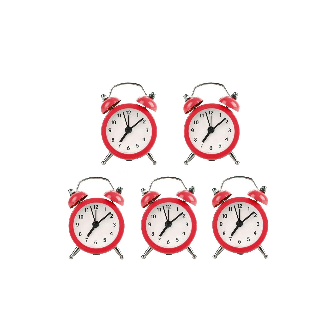 Sæt med 5 basale (rejse)ure med alarm, (virker på knapbatteri som medfølger), ideelle til at tage med på ferie, i teltet eller på et hotel.