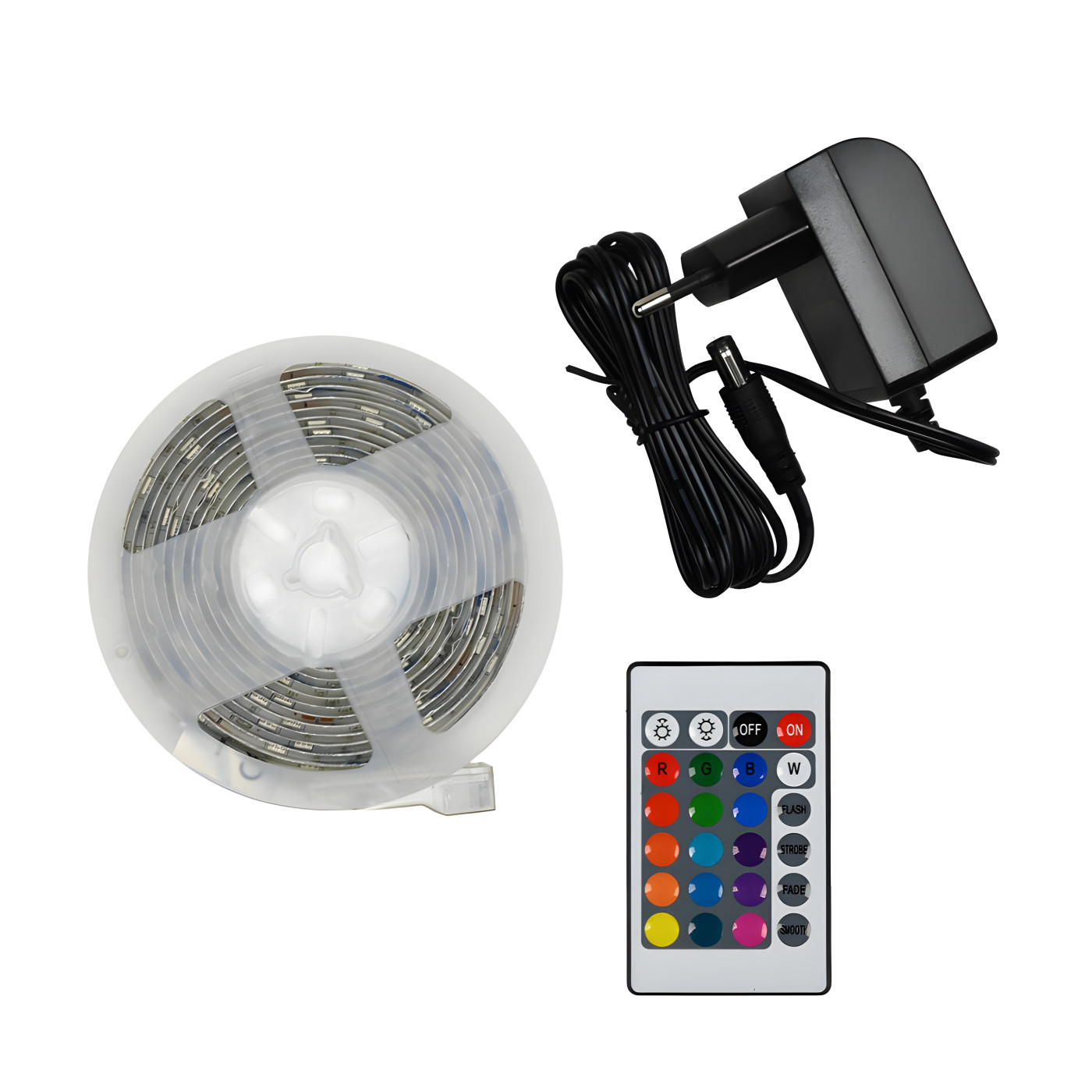 Flexibler LED-Streifen (RGB) von 3 Metern mit Adapter und Fernbedienung.