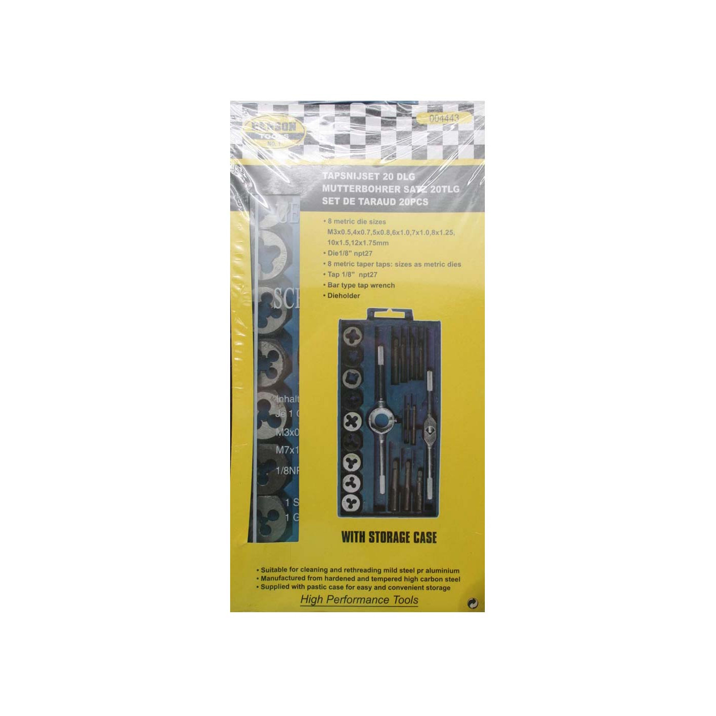 Cutting and tapping set consisting of tap and dies in sizes from M3 to M12.