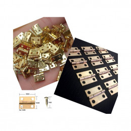 Conjunto de 8 pequeñas bisagras metálicas. Estas bisagras no se pueden abrir más de 90 grados, esto es útil, por ejemplo, con cajas de madera, para que la tapa pueda permanecer abierta. Las bisagras se suministran con tornillos a juego.