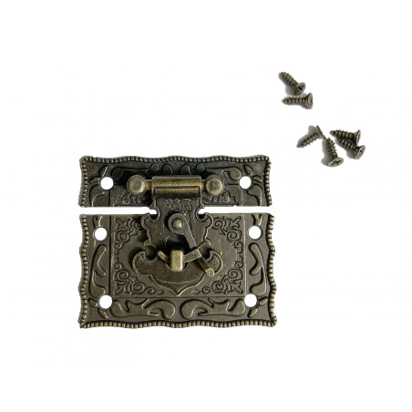 Cerradura de pecho clásica pequeña (cierre de 2 piezas, bronce, 44x51 mm)