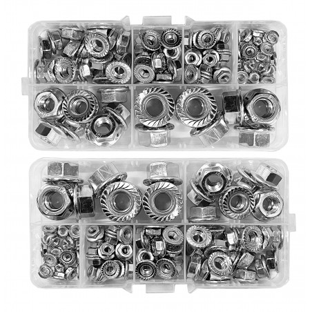 Juego de 200 tuercas hexagonales con brida (M3, M4, M5, M6, M8 y M10)