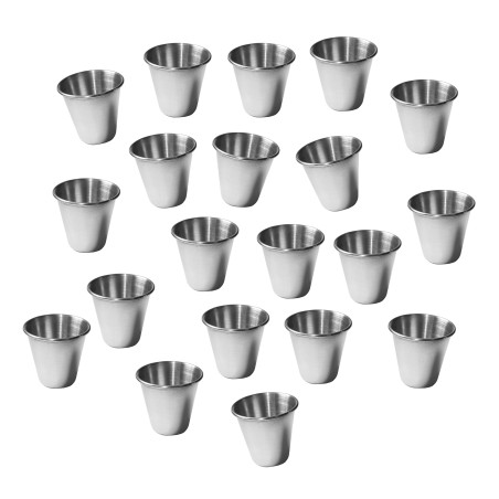 Juego de 20 vasos de acero inoxidable, 30 ml, con bordes redondeados