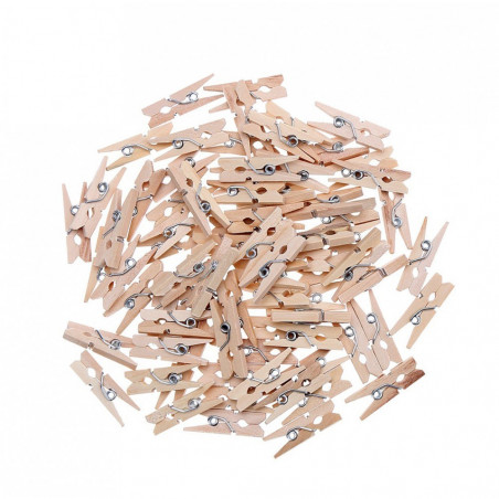 Cet ensemble contient un grand lot de nos petites pinces à linge en bois (de 35 mm de longueur).