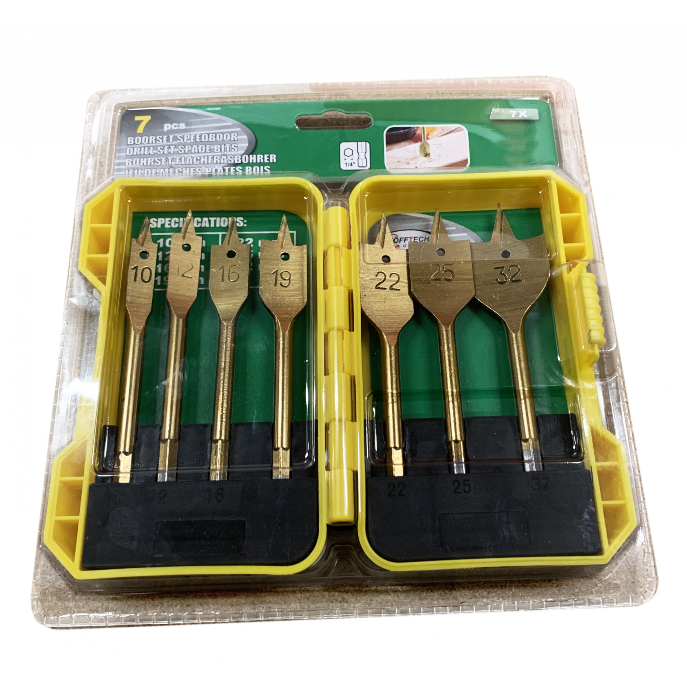 Jeu de 7 mèches plates (forets à bois) avec queue hexagonale: 10, 12, 16, 19, 22, 25 et 32 mm