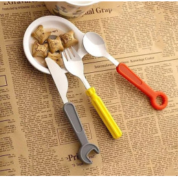 Cet ensemble de couverts avec une fourchette, un couteau et une cuillère est un cadeau agréable et utile. Fabriqué en acier inoxydable et en plastique (poignée).