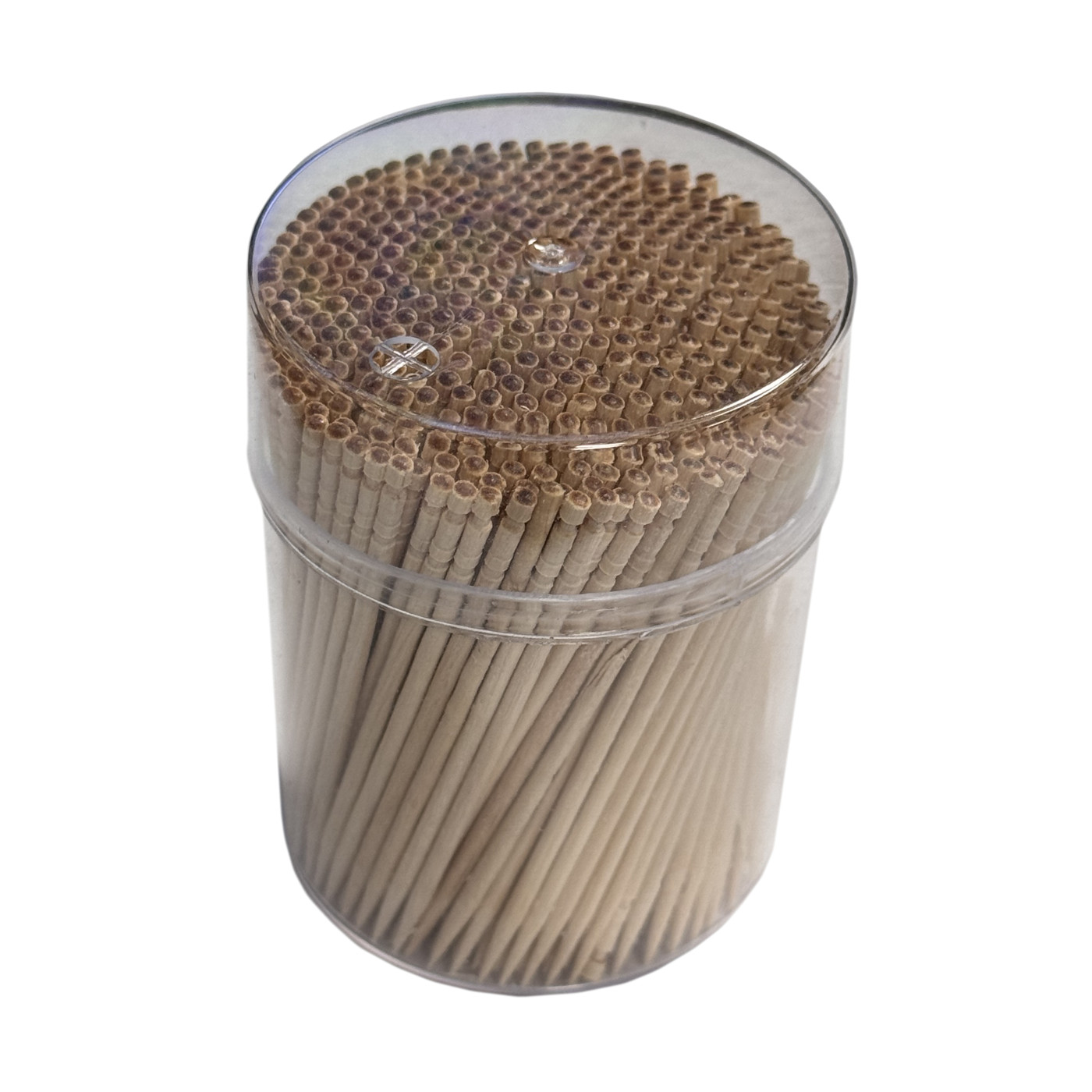 Bastoncini di bambù splendidamente rifiniti (appuntiti da un lato), con un diametro di 2 mm e una lunghezza di 6,5 cm.