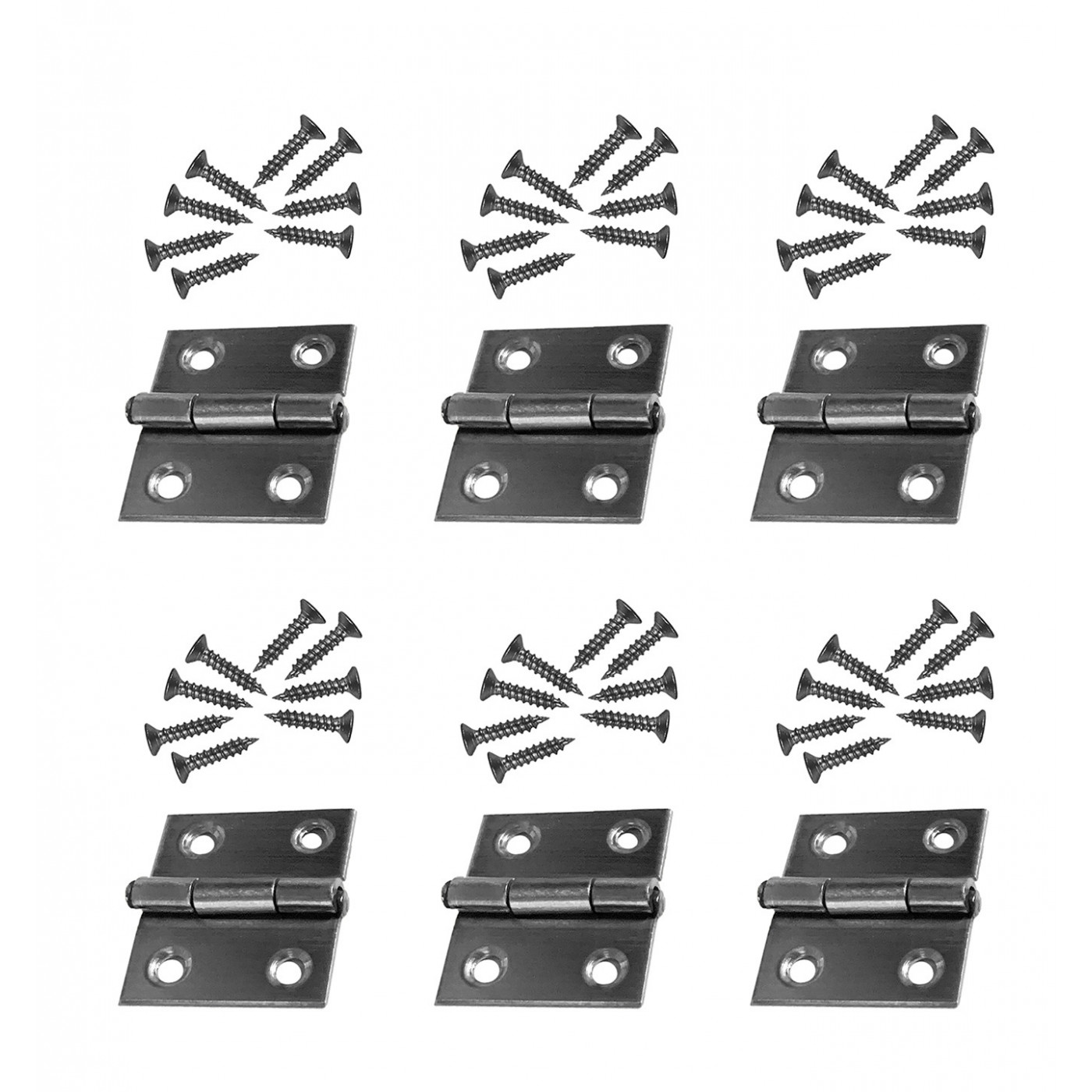 Set di 6 cerniere in acciaio inossidabile.