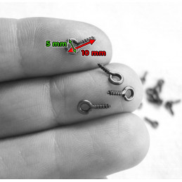 Le viti sono lunghe circa 10 mm e larghe 5 mm con un foro del diametro di 2,5 mm. Questi sono spesso usati per creare i tuoi gioielli o per appendere piccoli oggetti.