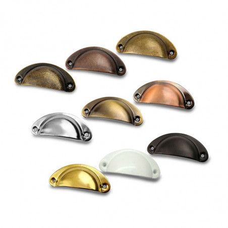 Maniglia a forma di conchiglia per mobili. Le viti necessarie sono incluse.