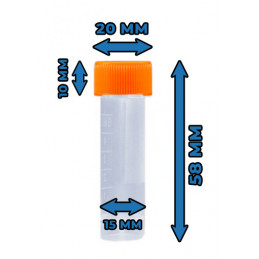 Plastic, transparante reageerbuis met een inhoud van 5 ml, voorzien van een schroefdop.