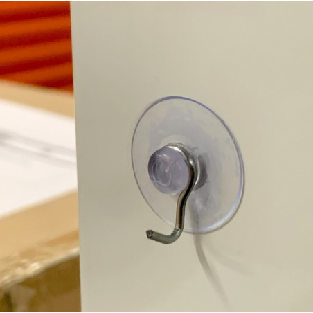 Transparante, watervaste zuignappen met metalen haakje, te gebruiken om items aan op te hangen.