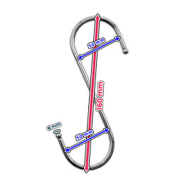 Zestaw 8 metalowych haczyków w kształcie litery S.