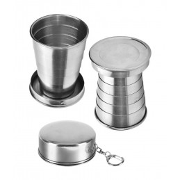 Kubek ma na dole przymocowaną do niego podstawkę. Kubek można złożyć. W ten sposób można go zawiesić z kółkiem na kółku na klucze.