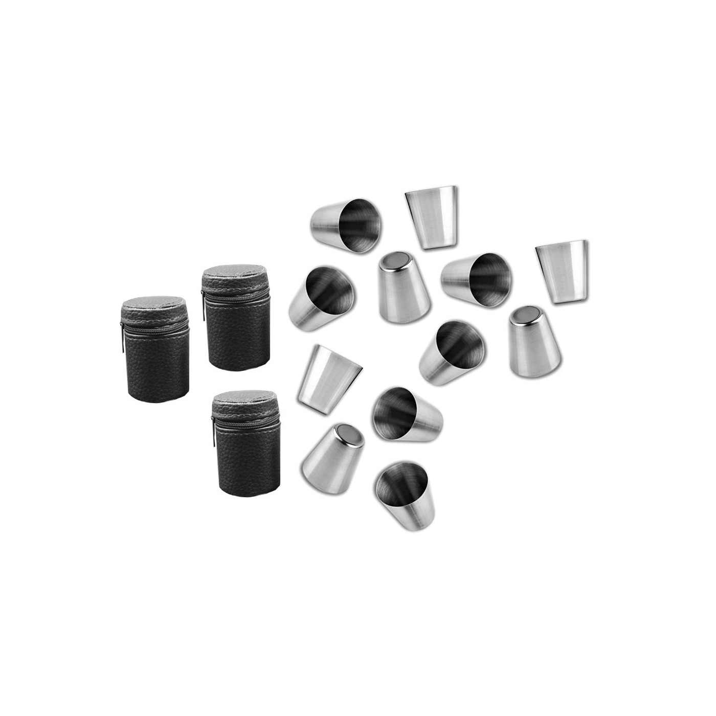 Zestaw 12 małych kubków ze stali nierdzewnej do mieszania i dozowania płynów. Używany również do napojów (alkoholowych).