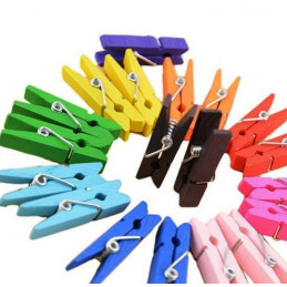 Mikro szpilki do ubrań w losowych kolorach, z drewna, długość 25 mm.