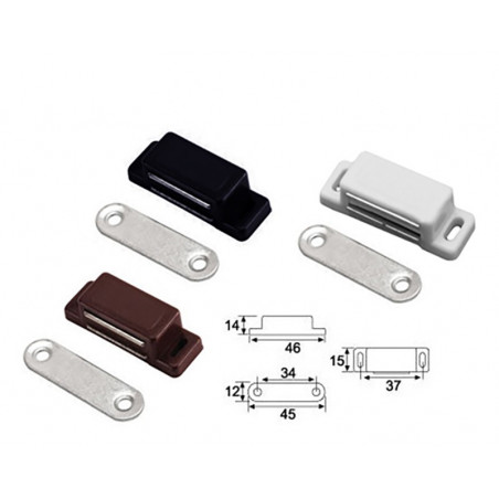 Conjunto de 32 fechos magnéticos pretos para armários com sistema de abertura por pressão.