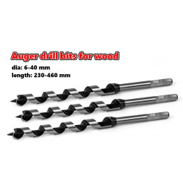 Nós vendemos os seguintes tamanhos de brocas de trado para madeira: - diâmetros: 6 a 40 mm - comprimento: 230 a 460 mm