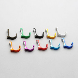 Não é a cor certa? Nós vendemos esses ganchos em 10 cores diferentes: vermelho, verde, roxo, preto, azul claro, azul escuro, prata, bronze, laranja e ouro. O gancho vem com parafusos e buchas.