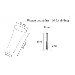 6 ganchos de madeira (faia) 6 parafusos 6 plugues (por exemplo, para uma parede de concreto)