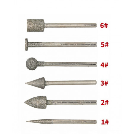 Conjunto de rebarbas de diamante de 3 mm, 6 peças