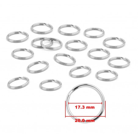 Nosso chaveiro com um diâmetro interno de cerca de 17,3 mm e um diâmetro externo de cerca de 20 mm é um belo anel sólido com uma espessura de 2 mm. Útil para fazer chaveiros e cabides para nomes. Número de anéis neste conjunto: 180