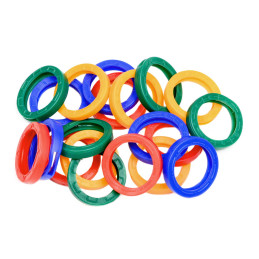 Este conjunto contém 20 chaveiros, divididos em quatro cores (cinco anéis por cor). Codificar suas chaves por cores evita confusões e economiza um tempo valioso na busca. Os chaveiros são flexíveis e se adaptam facilmente a chaves de diferentes formatos, como modelos redondos, ovais ou triangulares. Eles permanecem firmes no lugar e são fáceis de colocar e remover.