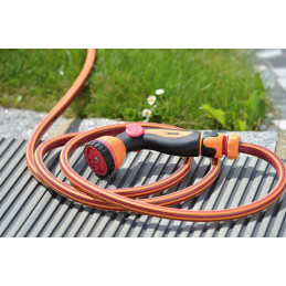 Este conjunto de mangueira de jardim muito completo da REHAU oferece tudo o que você precisa para a irrigação do seu jardim! O conjunto inclui uma mangueira de jardim de 25 metros de alta qualidade e uma pistola de pulverização resistente com até 7 opções de pulverização diferentes. Com os acoplamentos incluídos, você pode começar a trabalhar imediatamente no jardim.