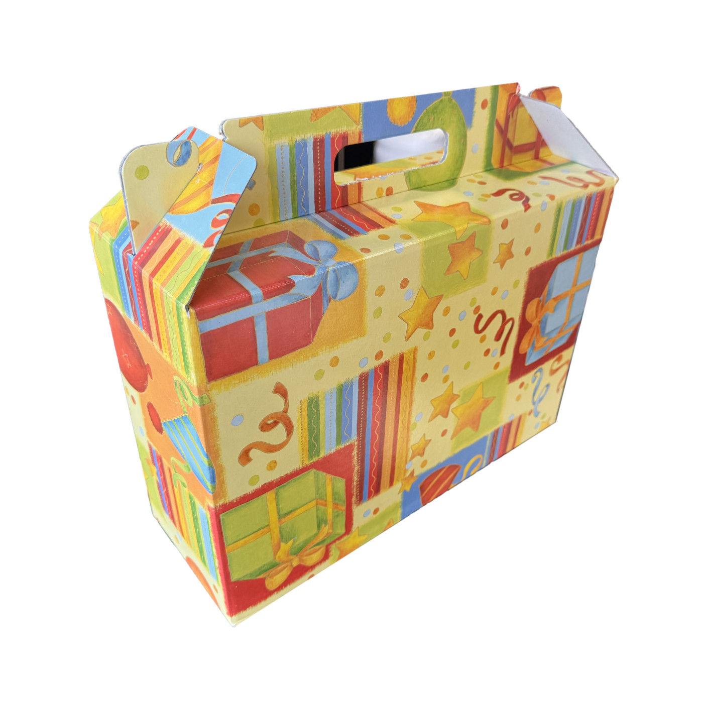 Esta mala de papelão resistente com um design alegre para presente foi especialmente projetada para crianças e creches. Ela contém uma seleção diversificada de peças de madeira que permitem às crianças criar, construir e soltar a imaginação.